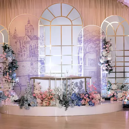 • Подбор всех необходимых профи: ведущий, фотограф, декоратор, видеограф, стилист, кондитер, кавер-группа, хореограф, активности на welcome-зону и шоу-программа для банкетной части